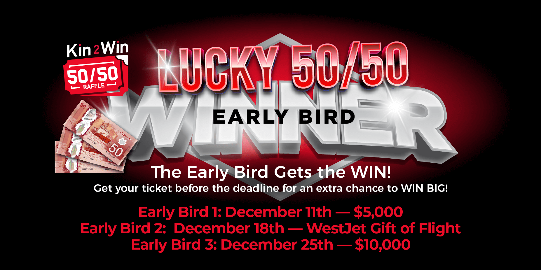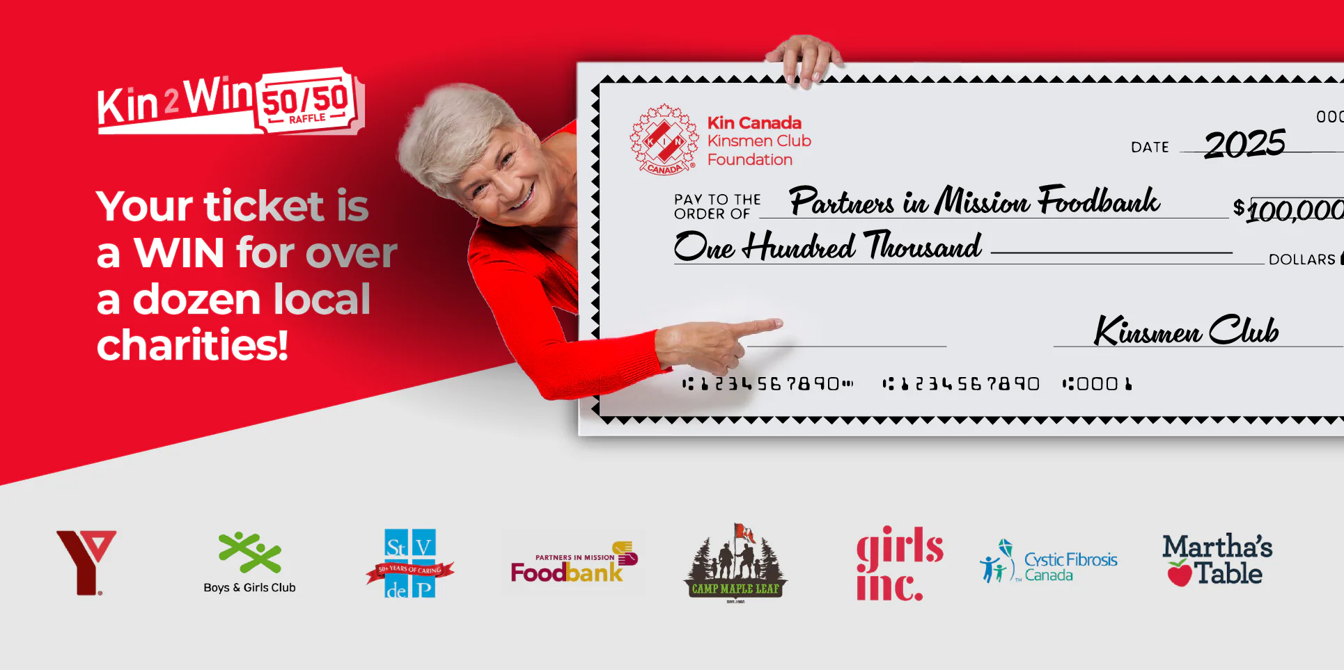 We're more than just a 50/50; we're a community, and we're committed to giving back. The Kinsmen Club of Kingston Foundation is a small group of dedicated individuals who strive to serve our “Community’s Greatest Need”, since our inception in 1932. Every draw is 100% volunteer-run with 100% of proceeds returning back to the community.